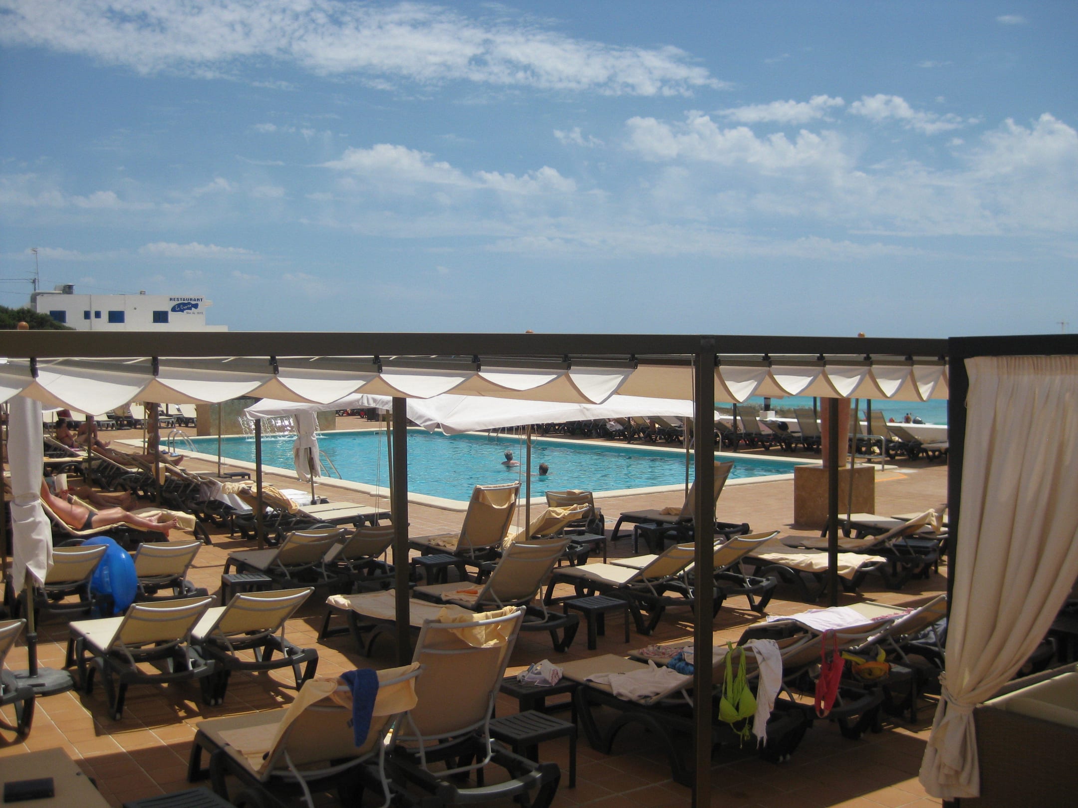 Blick auf den Pool von den Treppen aus