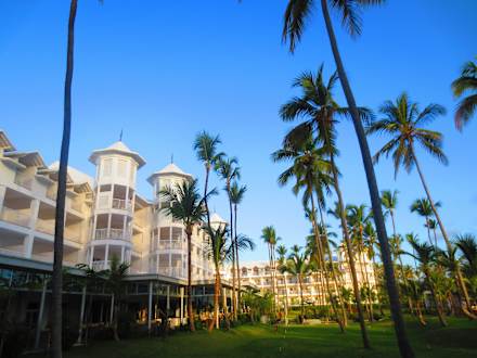 Blick vom Pool zum Hotel