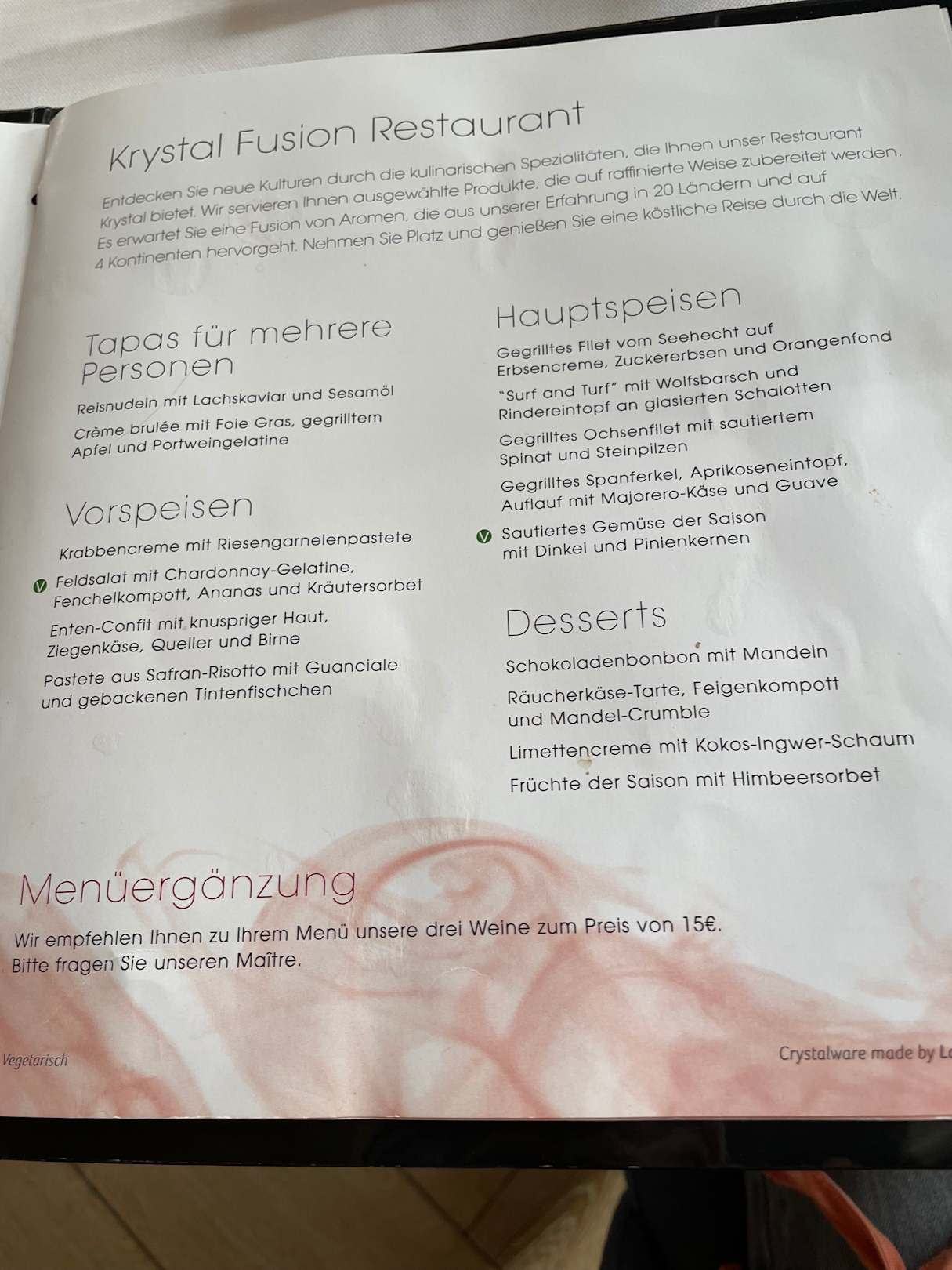 Speisekarte Krystal Fusion