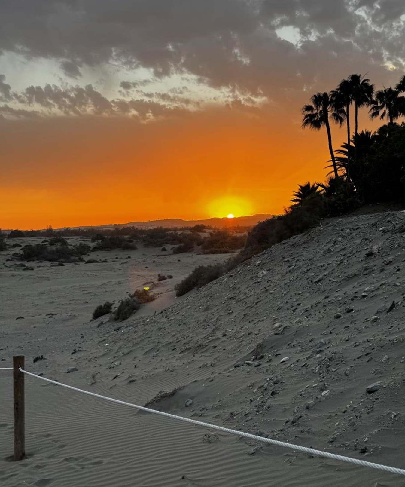 Blick vom Eingang zu den Dünen bei Sonnenuntergang