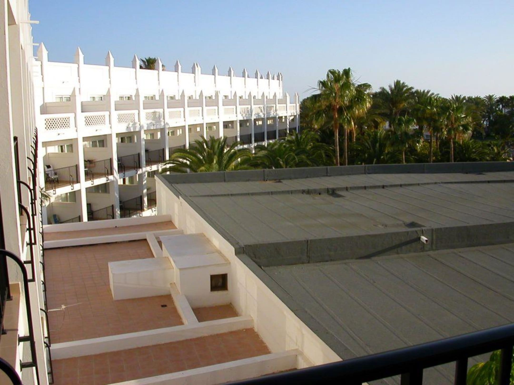 Blick vom Balkon Zimmer 2021 auf die Nachbarbalkone.