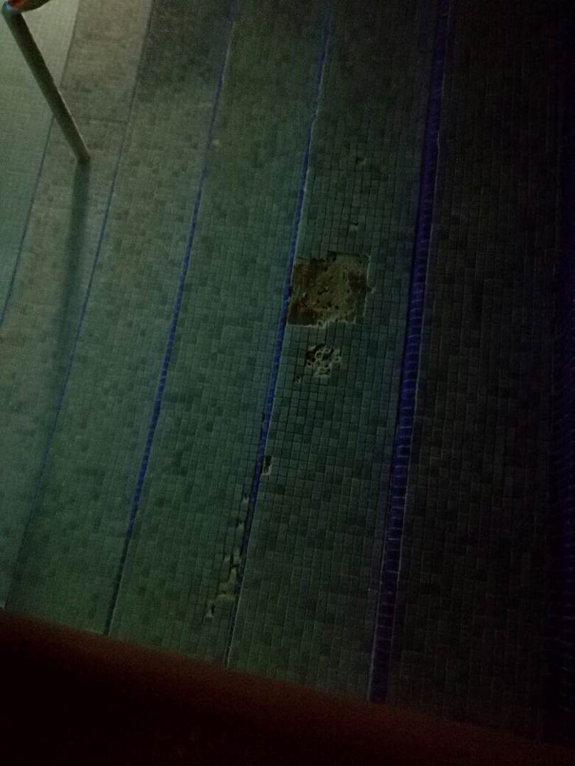 Feende fliesen auf den treppen zum unteren pool