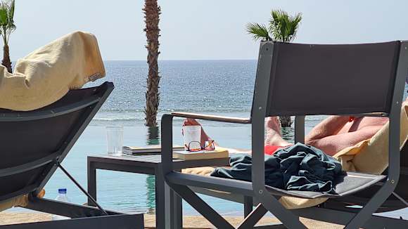 Blick über Infinity-Pool auf Atlantik