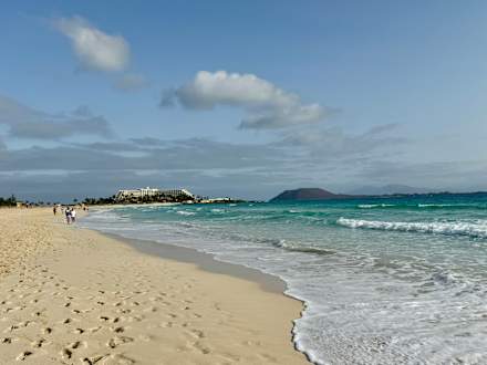 Traumstrand, im Hintergrund das Hotel