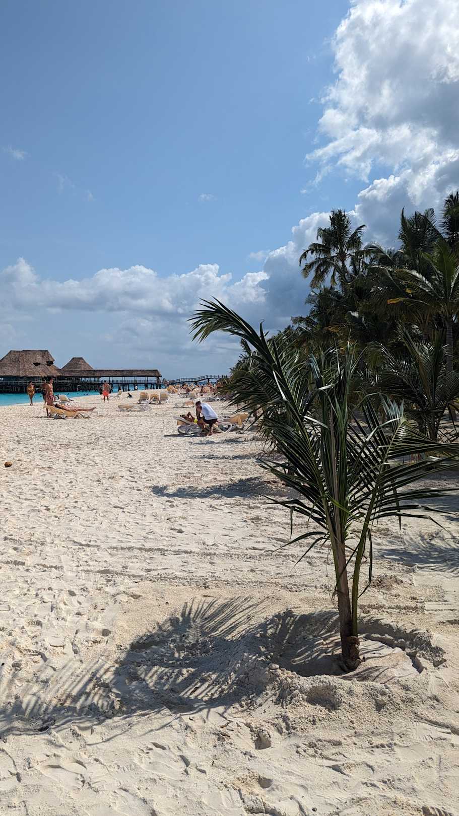 Strandam Jambo. Im HIntergrund Bar und zwei Spezialitätenrestaurants die man vorab reservieren musste. Im Meer auf Stelzen