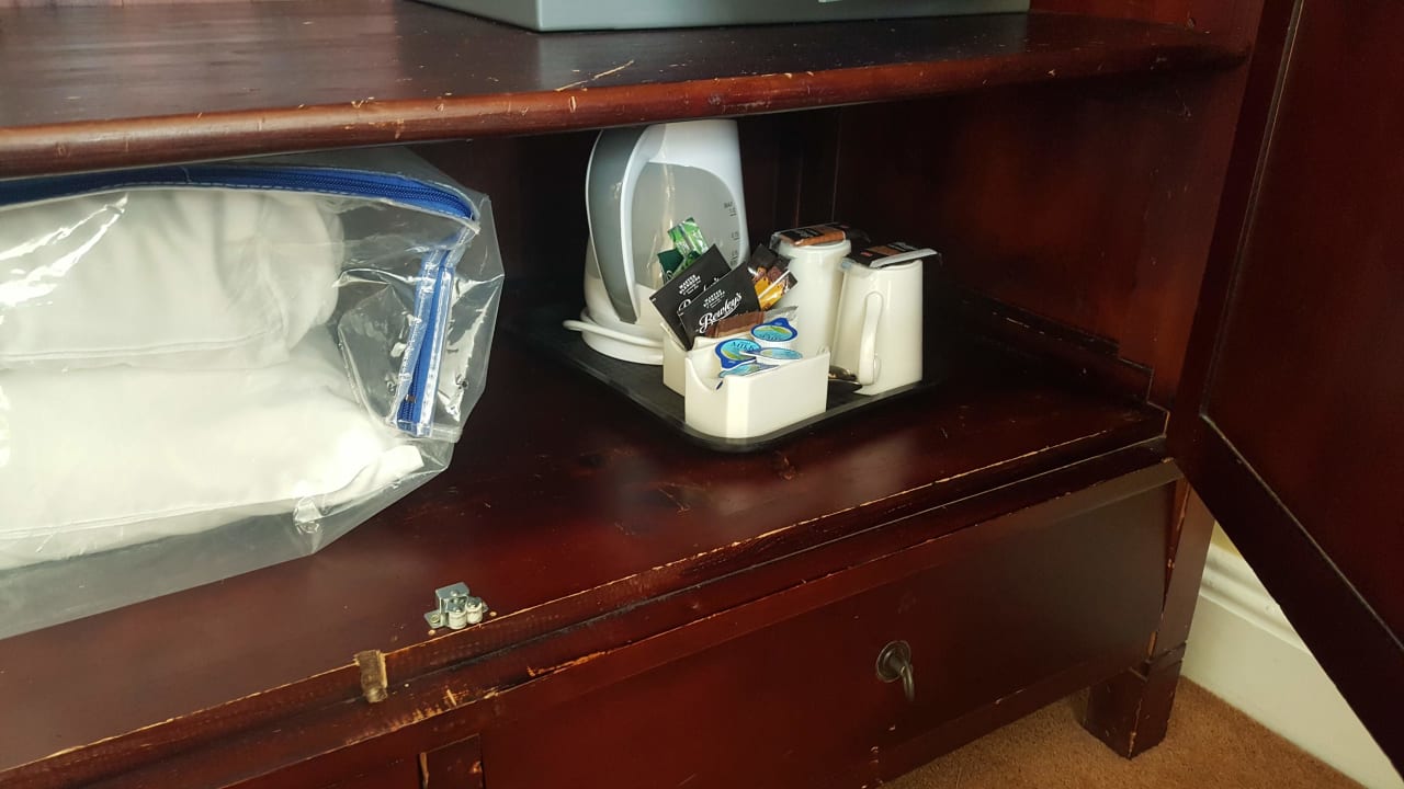 Kaffee und Tee im Schrank. Schrank leider etwas abgenutzt.
