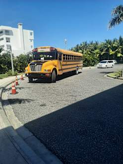 Schoolbus, mit dem fährt man zur JungleParty in Riu Palace
