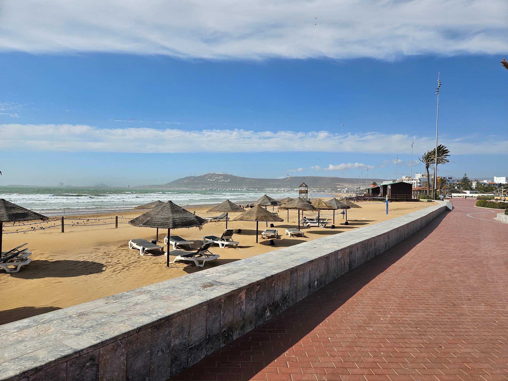 Hotelstrand mit Liegen und Strandpromenade