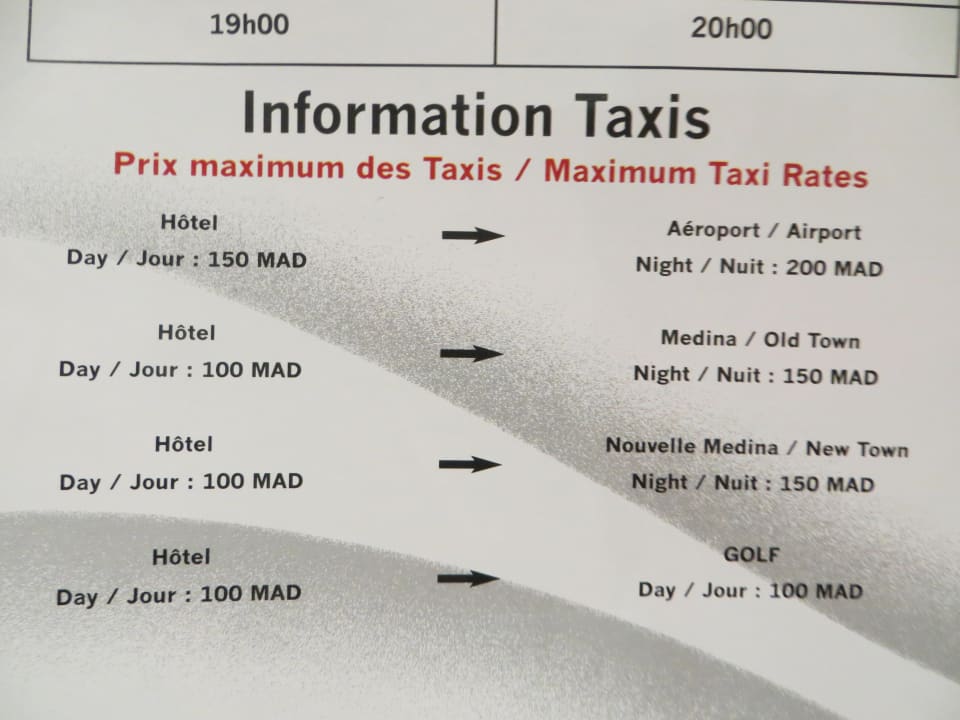 Taxi Preise vom Hotel aus