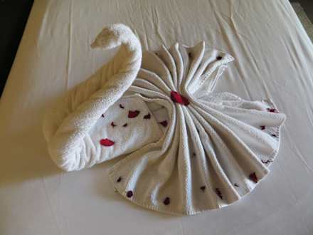 Tolle Handtuchtierchen auf dem Bett
