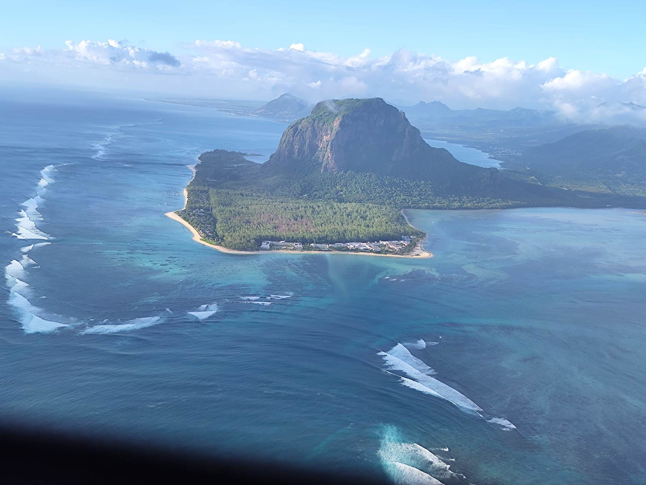 AußenansichtWährend unseres Hubschrauber-Rundfluges konnten wir das Hotel aus der Luft aufnehmen. Ist schon ein schöner Fleck Erde!