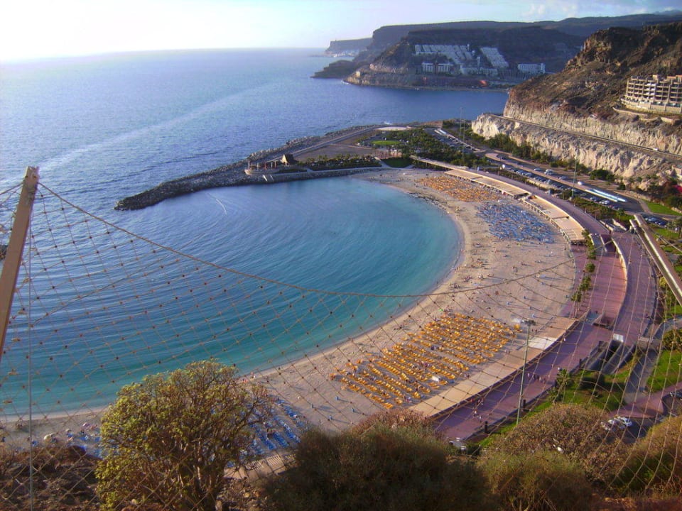 der Blick von oben, vom RIU aus, auf den Strand und das Meer