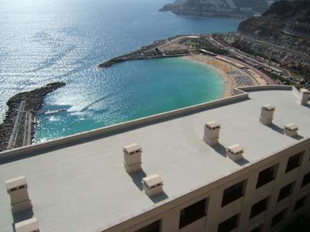 Das ist ein Blick vom Hoteldach zum Strand