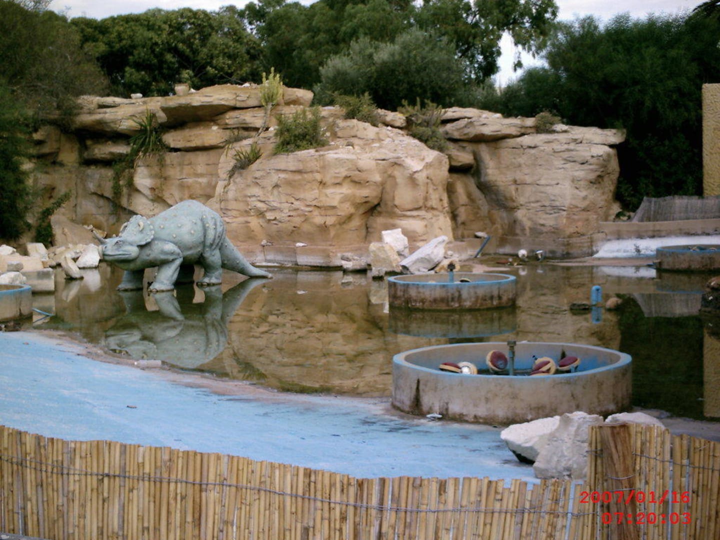 Völlig verdrecktes Show BeckenDa hat schon lange keiner mehr saubergemacht...viel schlamm, mül, algen und stinke wasser...unddasbei den Kndern!