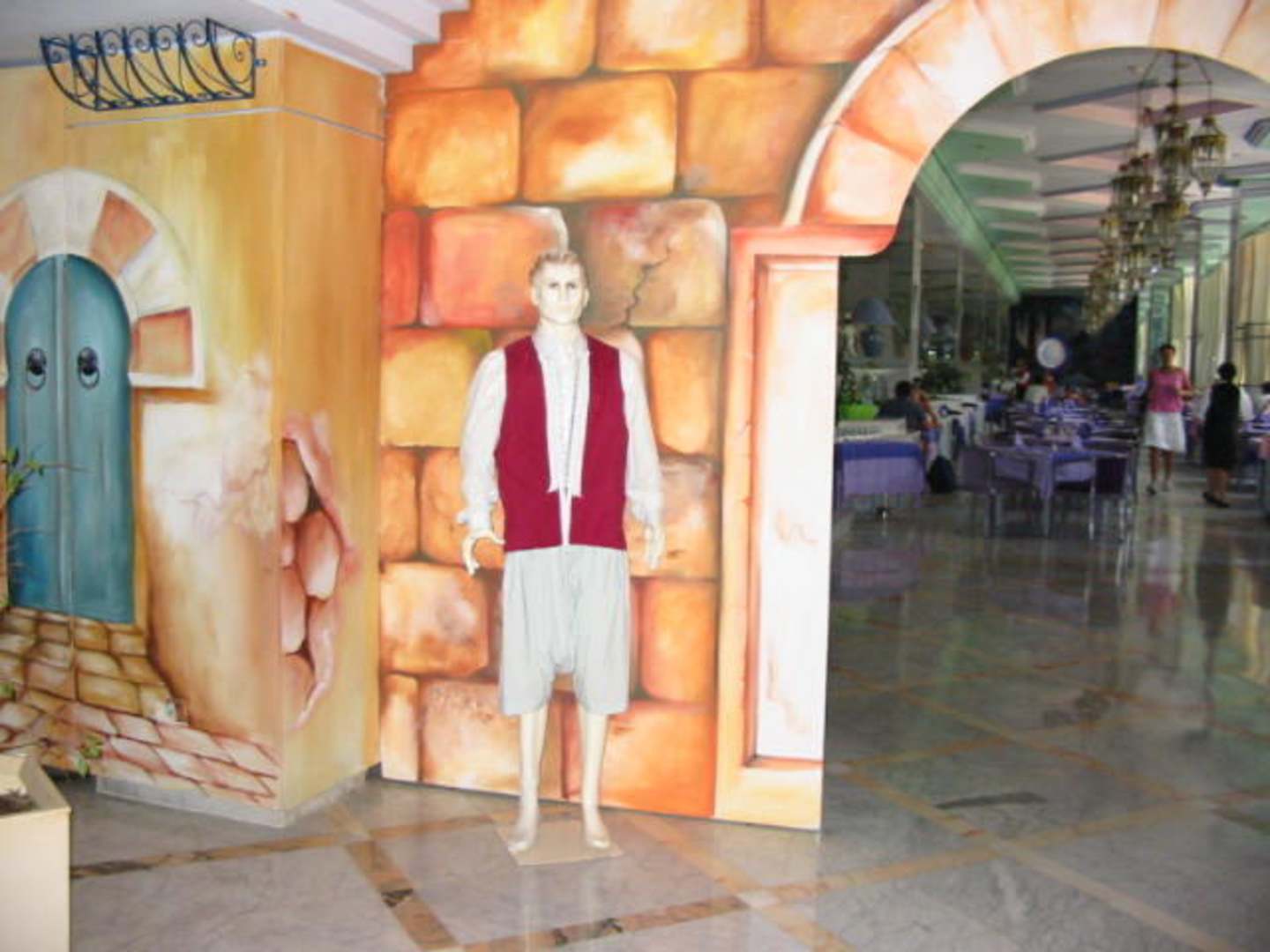 Das Hotel von innenInnen wurden die Wände so bemalt und Pupen aufgestellt das es ausieht wie ein kleines Dorf!