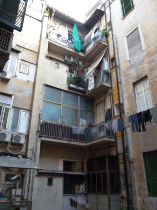 Innenhof zu allen 4 Seiten zugebaut, zum Himmel nur Blick nach oben. Ab 22.30Uhr wird es jedoch ruhig. Sonst hört man schon Musik und die typische Italienische Sprache.