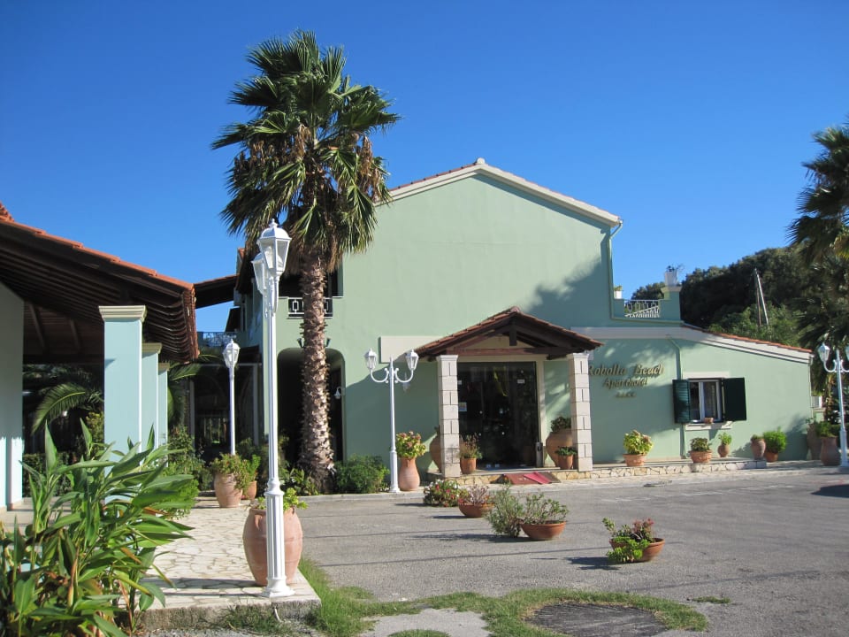 Eingang Robolla Beach Aparthotel