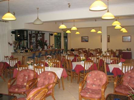 Speisesaal mit Bar und Lobby.