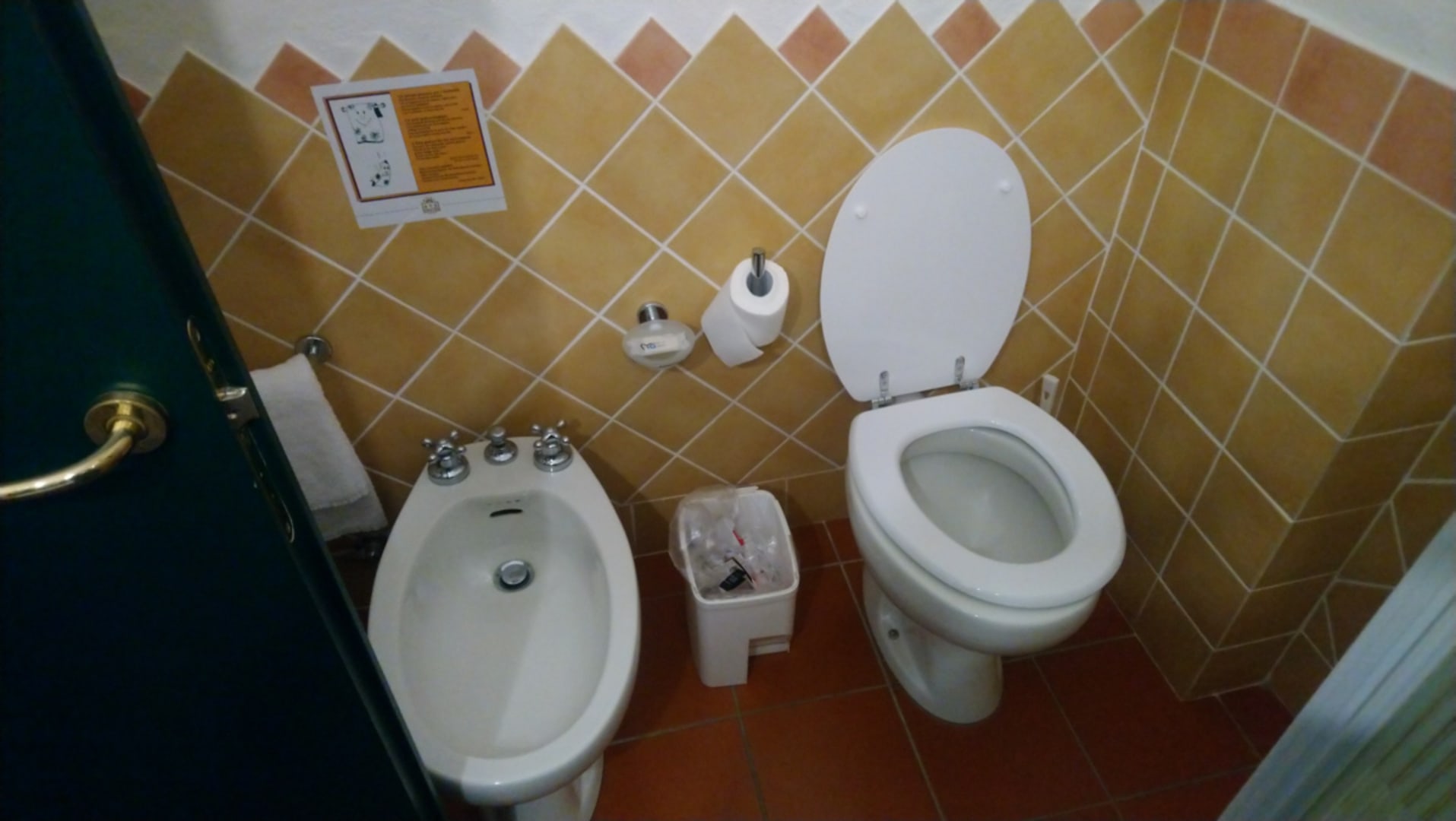 Nur 1 einfacher Platikmülleimer im ganzen Zimmer ( Bad )