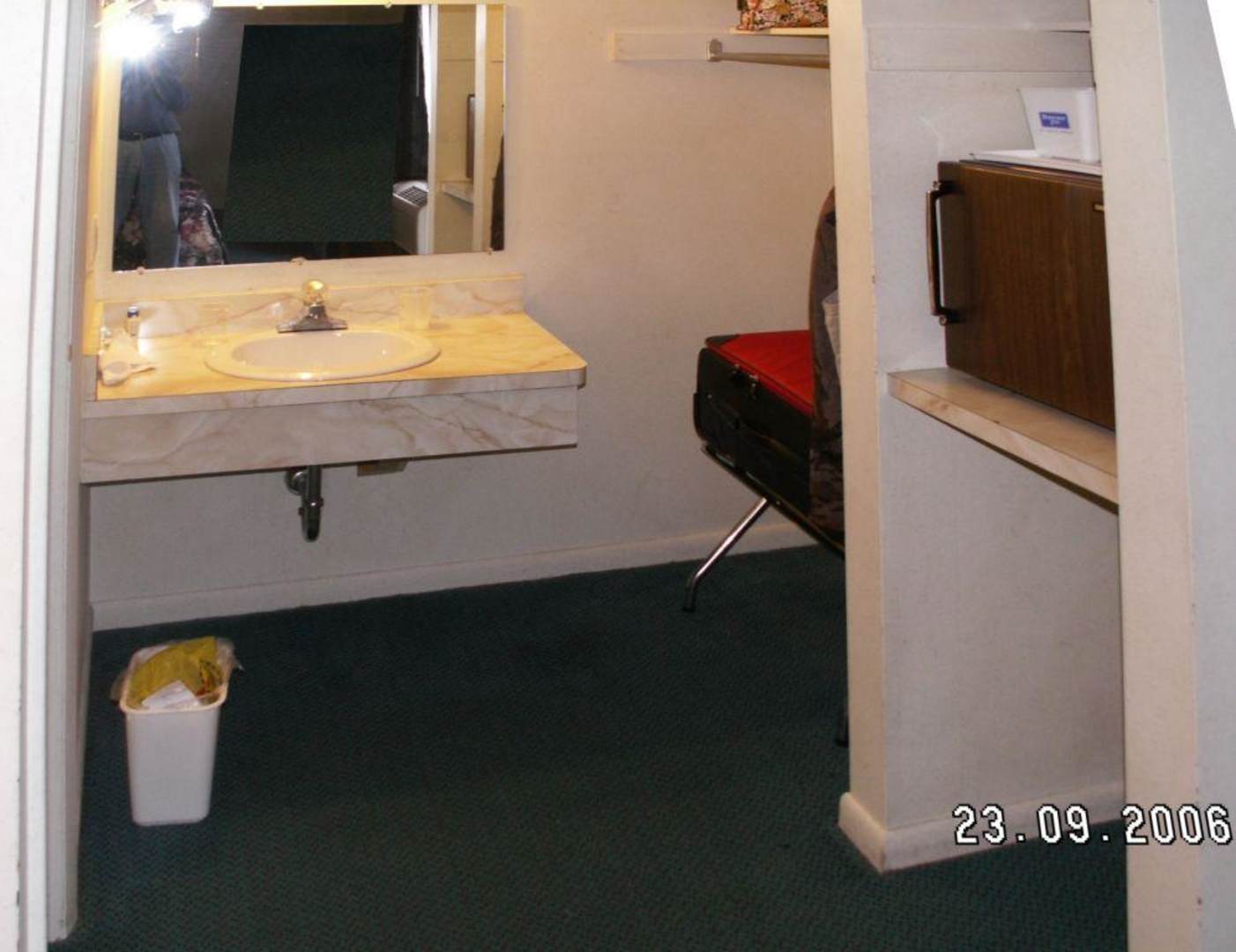 Waschecke mit Kofferablage und Mini-Kühlschrank (defekt)