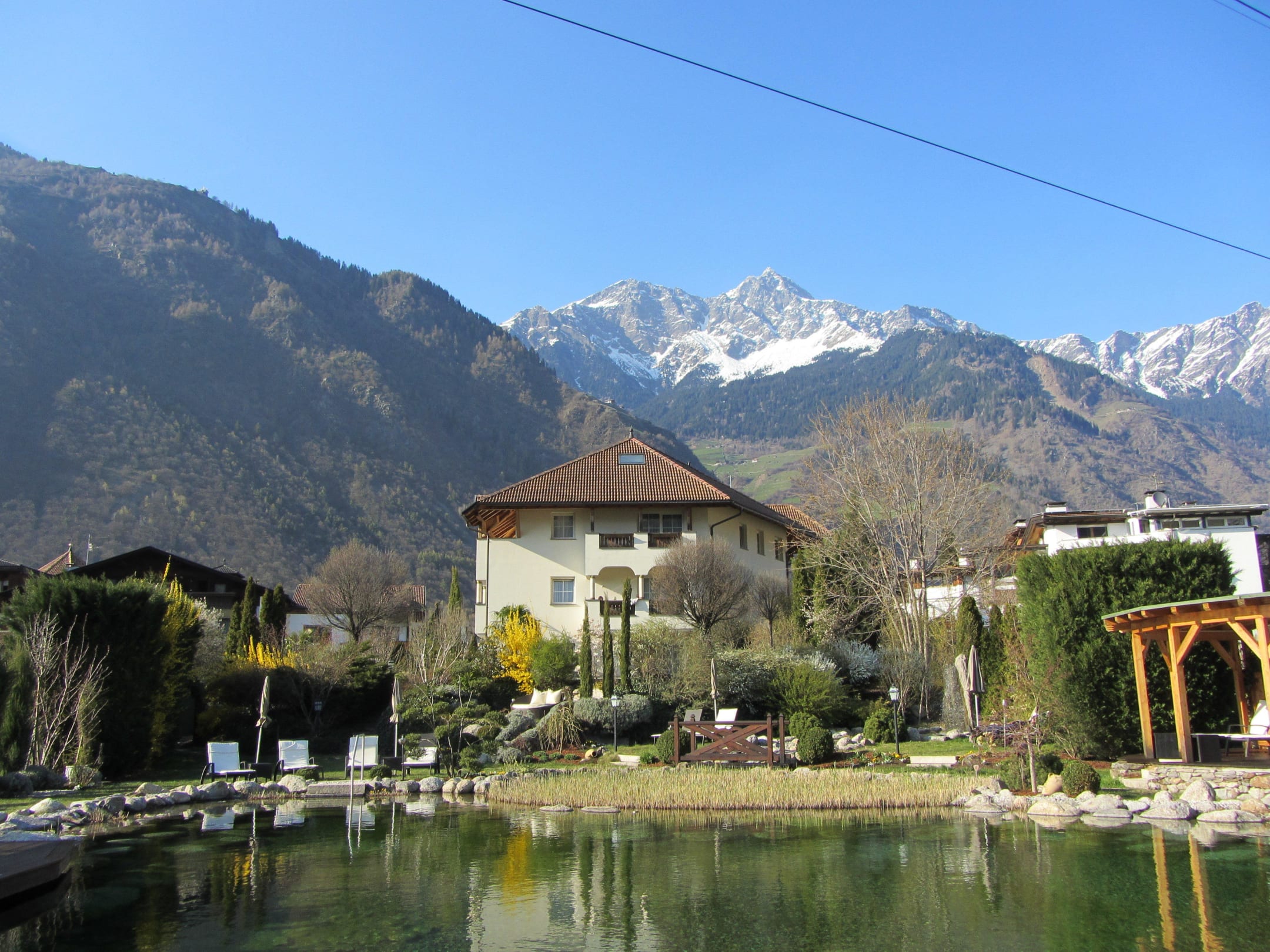 Vom Garten Blick zum Hotel