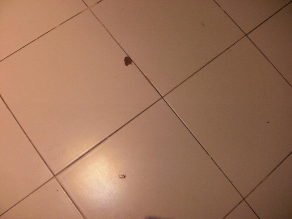 Nur eine von vielen zerschlagenen Fliesen im Zimmer