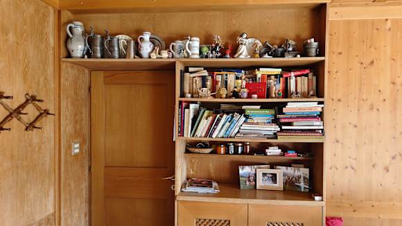 Sport & Freizeit"Inforegal" im Aufenthaltsraum neben der Hotelbar, Inhalt teilweise sehr überaltert