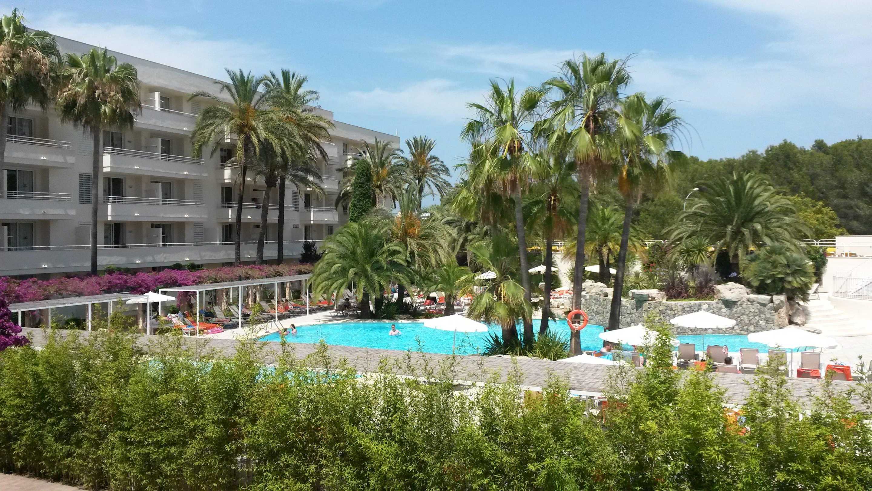 Ausblick vom zimmer auf die poolanlage