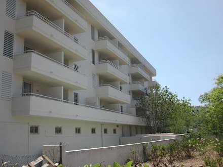 Hotelbereich Rtg. einer Freifläche ( rechts außerhalb des Fotos ). Auf-grund des unten erkennbaren Ver- und Entsorgungsbereichs sind zumindest die unteren Appartements nicht empfehlenswert !