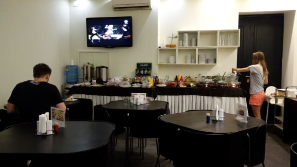 Frühstücksraum 5. StockWie man sieht, ist dieser Raum (ausgelegt für 36! Gäste) entschieden zu klein...