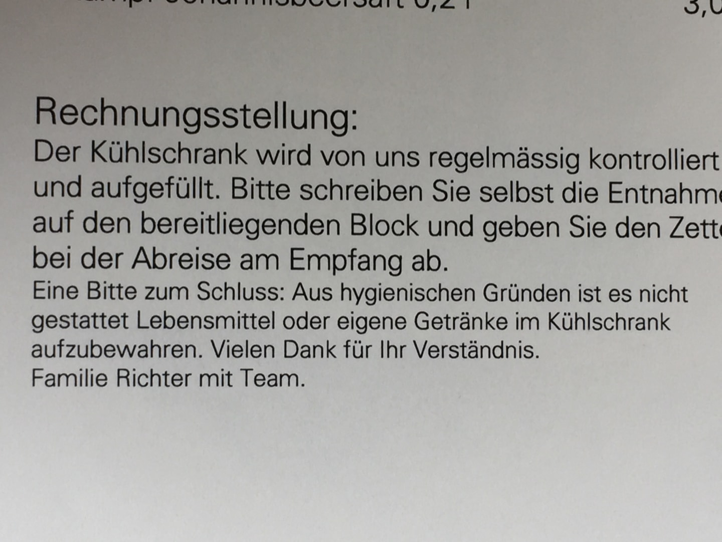 SonstigesAlso liebe Gäste: auf gar keinem Fall private Getränke mit aufs Zimmer nehmen! Schadet der Gesundheit...äh dem Umsatz?!