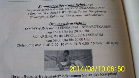 Die Öffnungszeiten der Sauna: Aber die Steinsauna war nie in Betrieb!!!