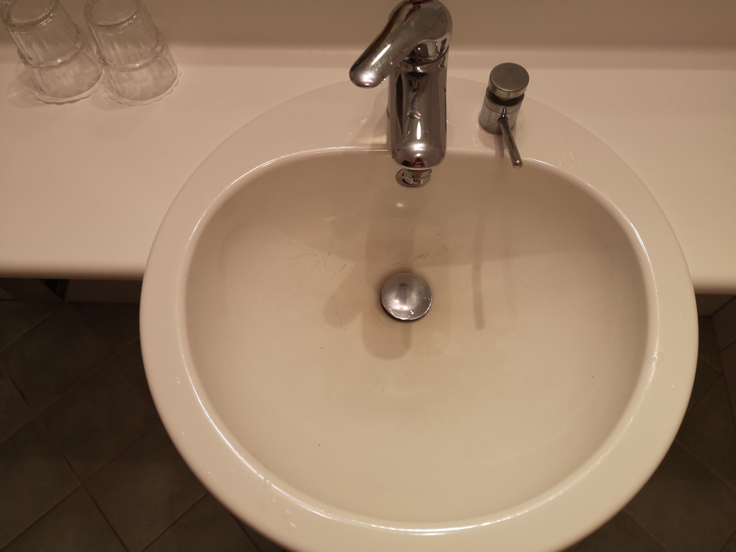 Hier in unserem ach so neuwertigem Bad, dass "super tolle Waschbecken"....