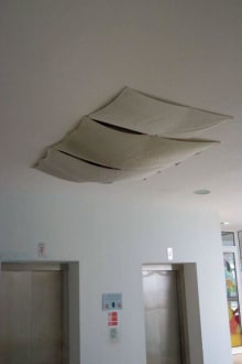 Loch in DeckeDecke im Bereich Miniclub-Restaurant-Fahrstuhl Notdürftig abgehängt, bei Regen standen Eimer darunter.