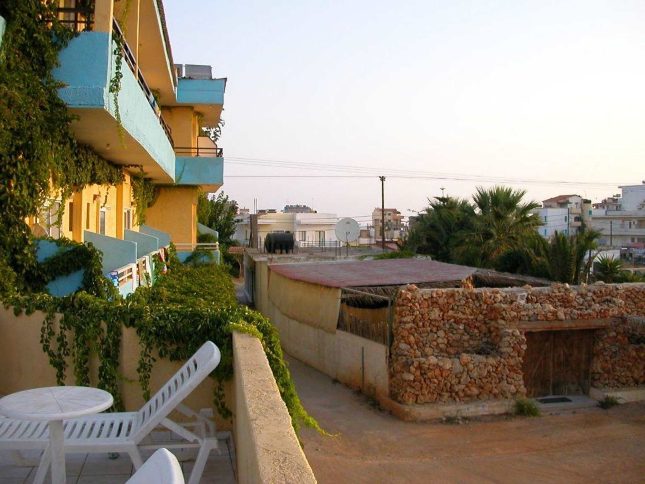 Kreta Amoudara Hotel Roxani RückseiteKreta Amoudara Hotel Roxani Rückseite Dachterasse Blick Richtung Strasse