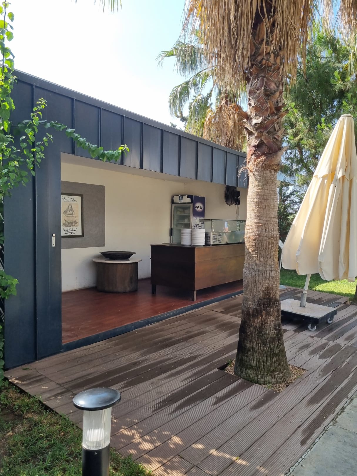 Liegt am Strand. Man konnte hier immer Tagsüber Crêpes mit verschiedener Füllung nehmen.