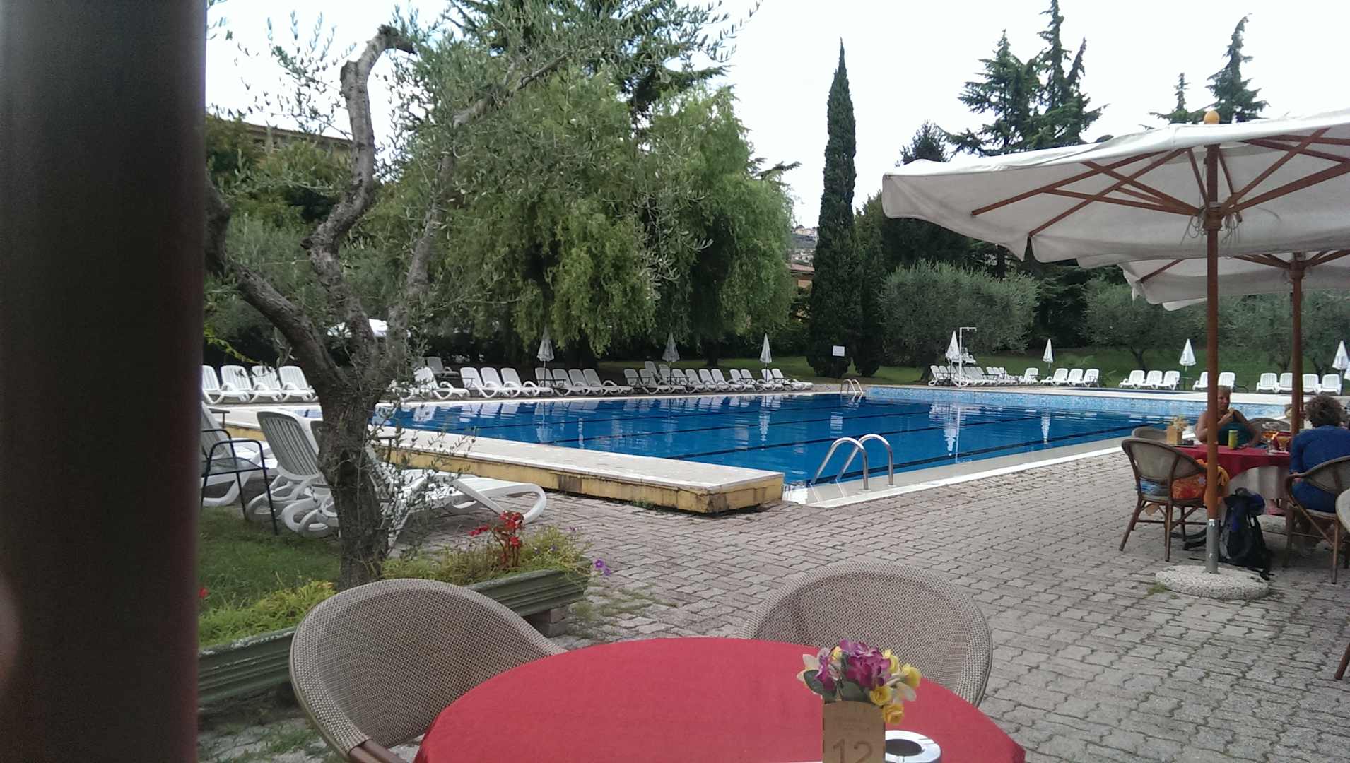 Der größere der beiden Pools. Belebter, jedoch viel Rasenfläche mit kostenfreien Liegen.