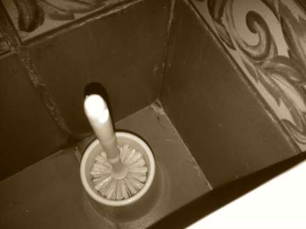 Alte ToillettenbürsteAlte Toilettenbürste. Bei genauerem Hinsehen kann man ein Spinnengewebe erkennen nebst Spinne