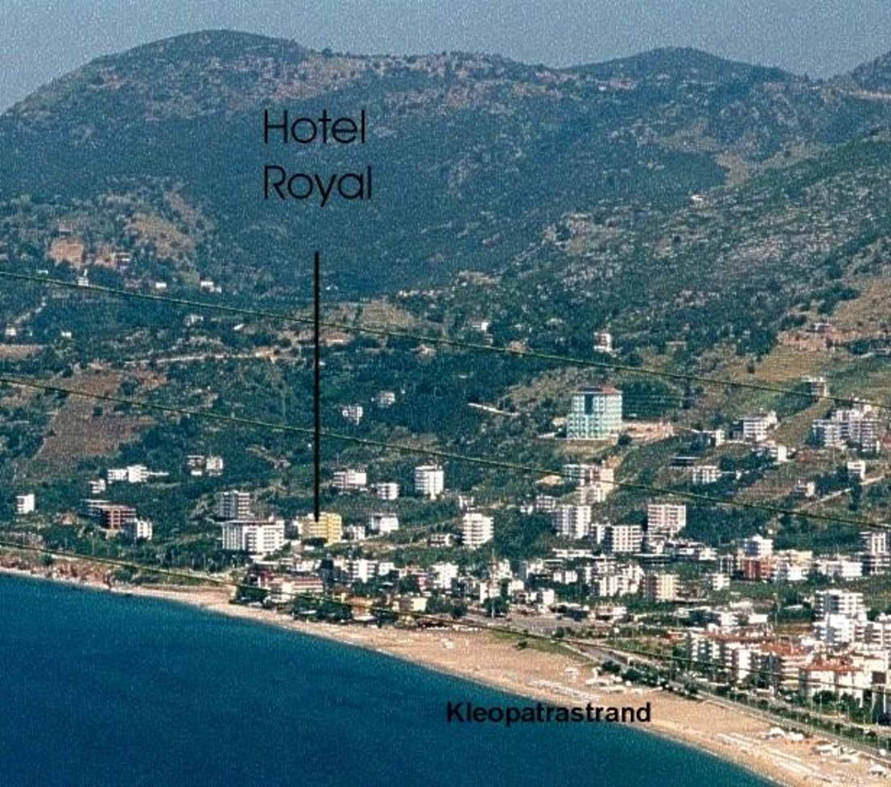 Zusehen ist der Kleopatrastrand und im Hintergrund, sehr schön gelegen, das Hotel Royal.