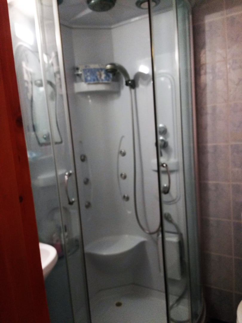 Gut gemeinte Duschkabine, sehr eng und verbraucht