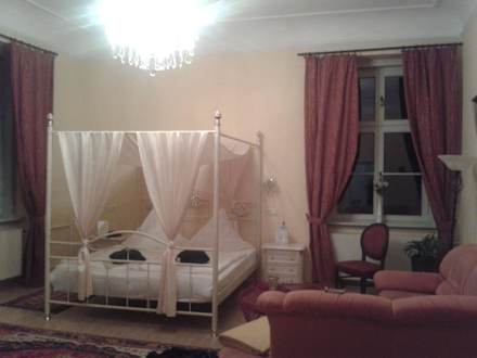 Das Zimmer mit Himmelbett und Sofalandschaft