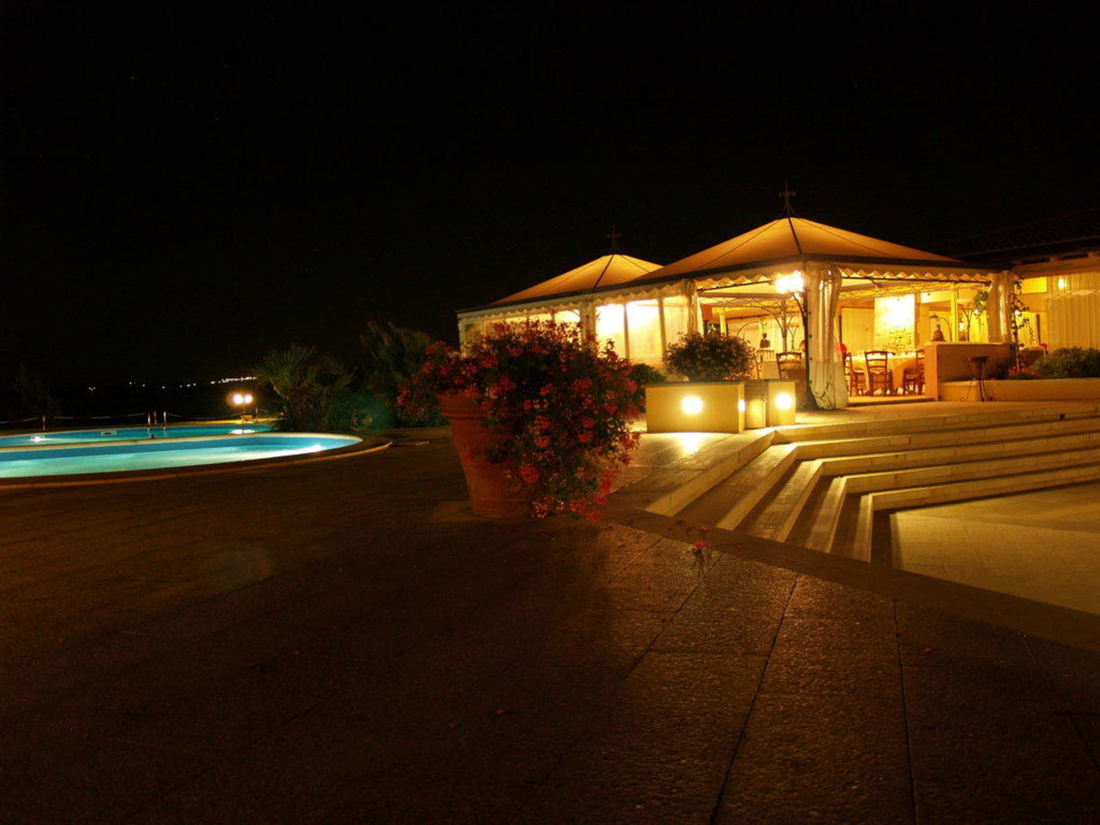 Pool und Restaurant bei Nacht