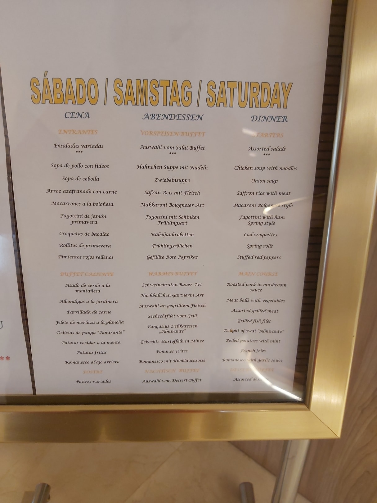 Speiseplan für den nächsten Abend