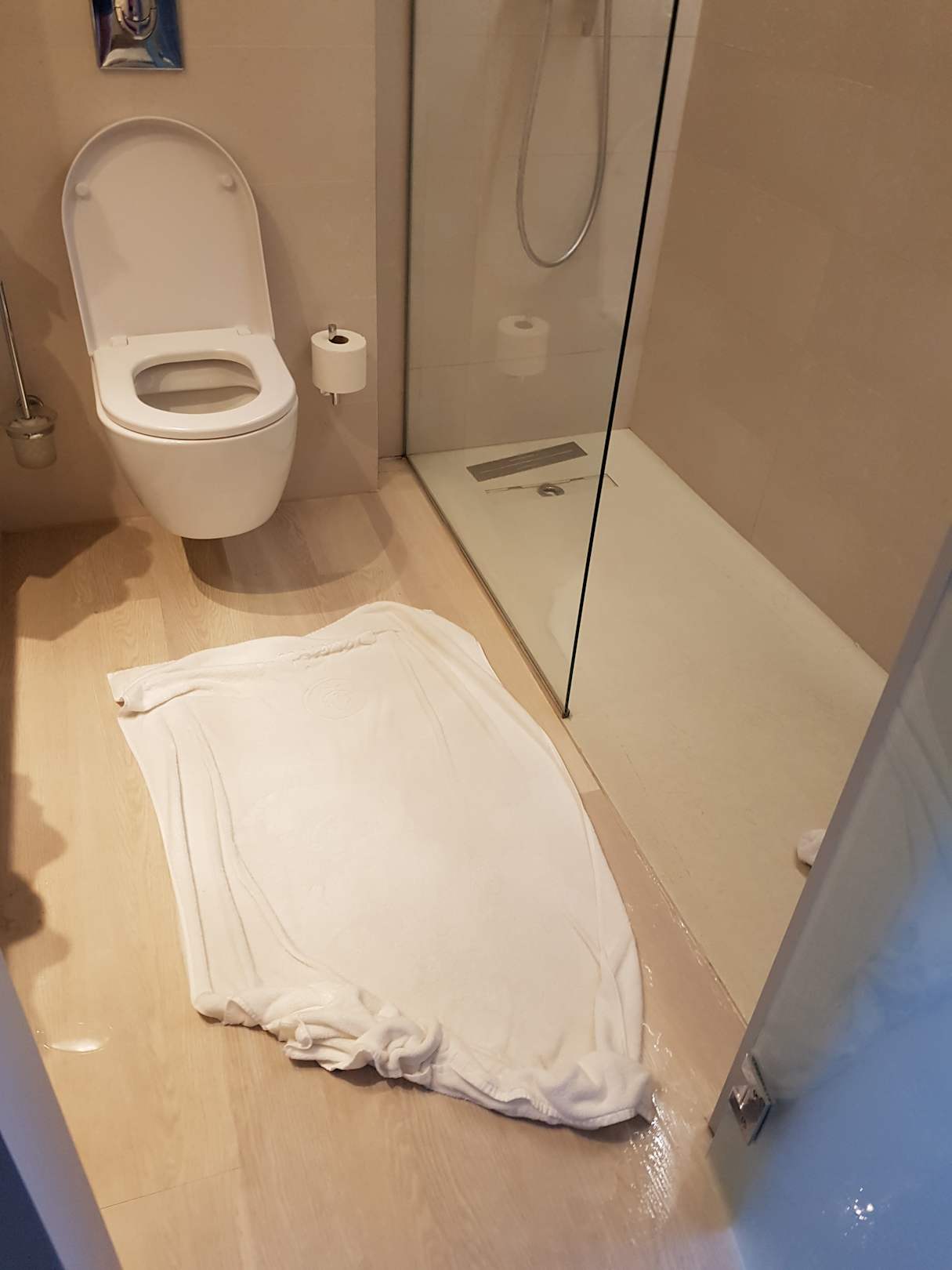 Überschwemmung der Dusche. Wurde aber schnell beseitigt.