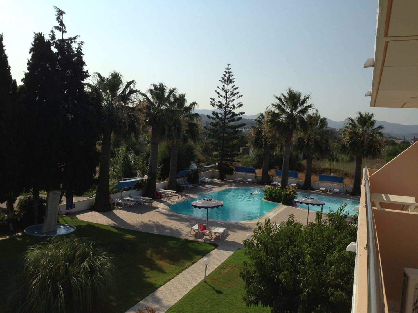 Ausblick von unserem Zimmer auf den Pool bei Tag