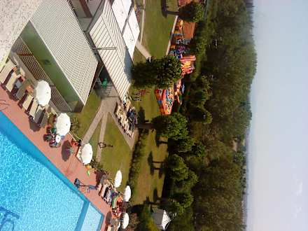 Pool und Gartenanlage vom 4. Stock