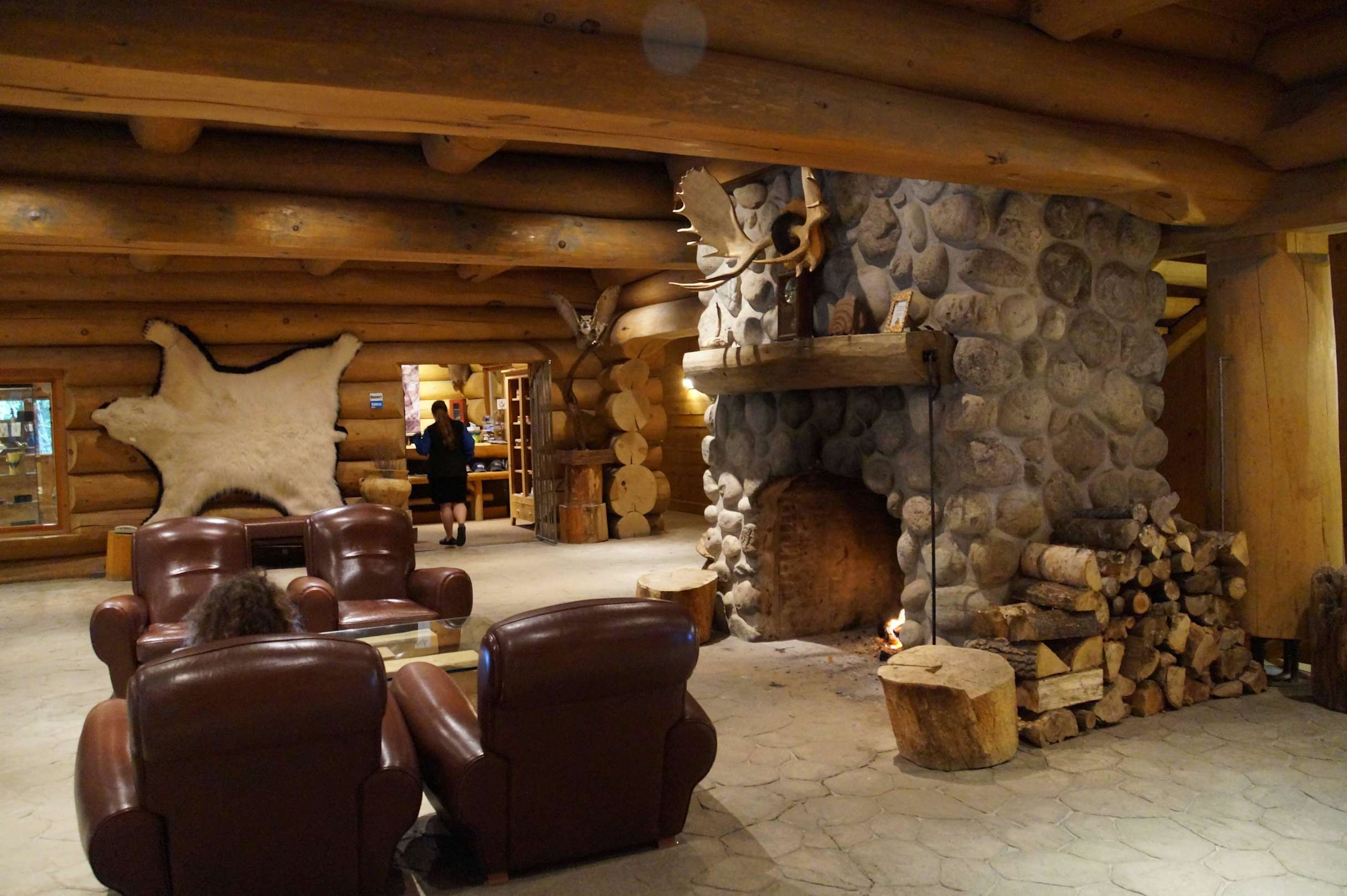 Foyer mit Kamin Hotel Sacacomie