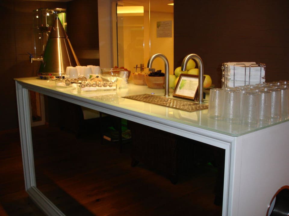 WellnessbereichHier kann man jederzeit Tee, frisches Quellwasser, Kuchen & Trockenfrüchte genießen