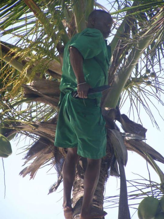 Koksmilch sollte man schon probierenFür das Wohl der Hotelgäste und eine kleine Anerkennung geht der Hotelgärtner auch einmal auf die Palme
