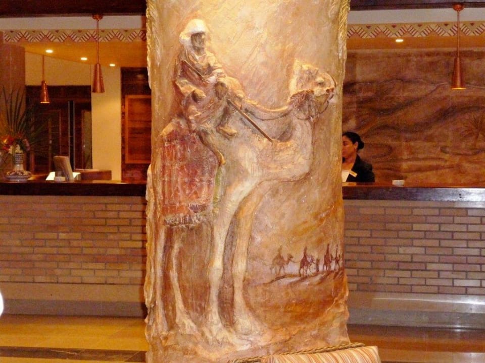 Die Säulen in der Lobby zeigen Motive aus der Region.